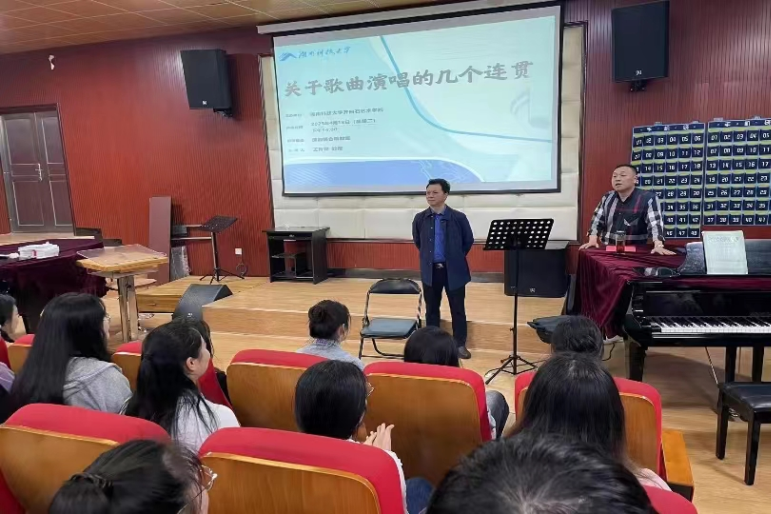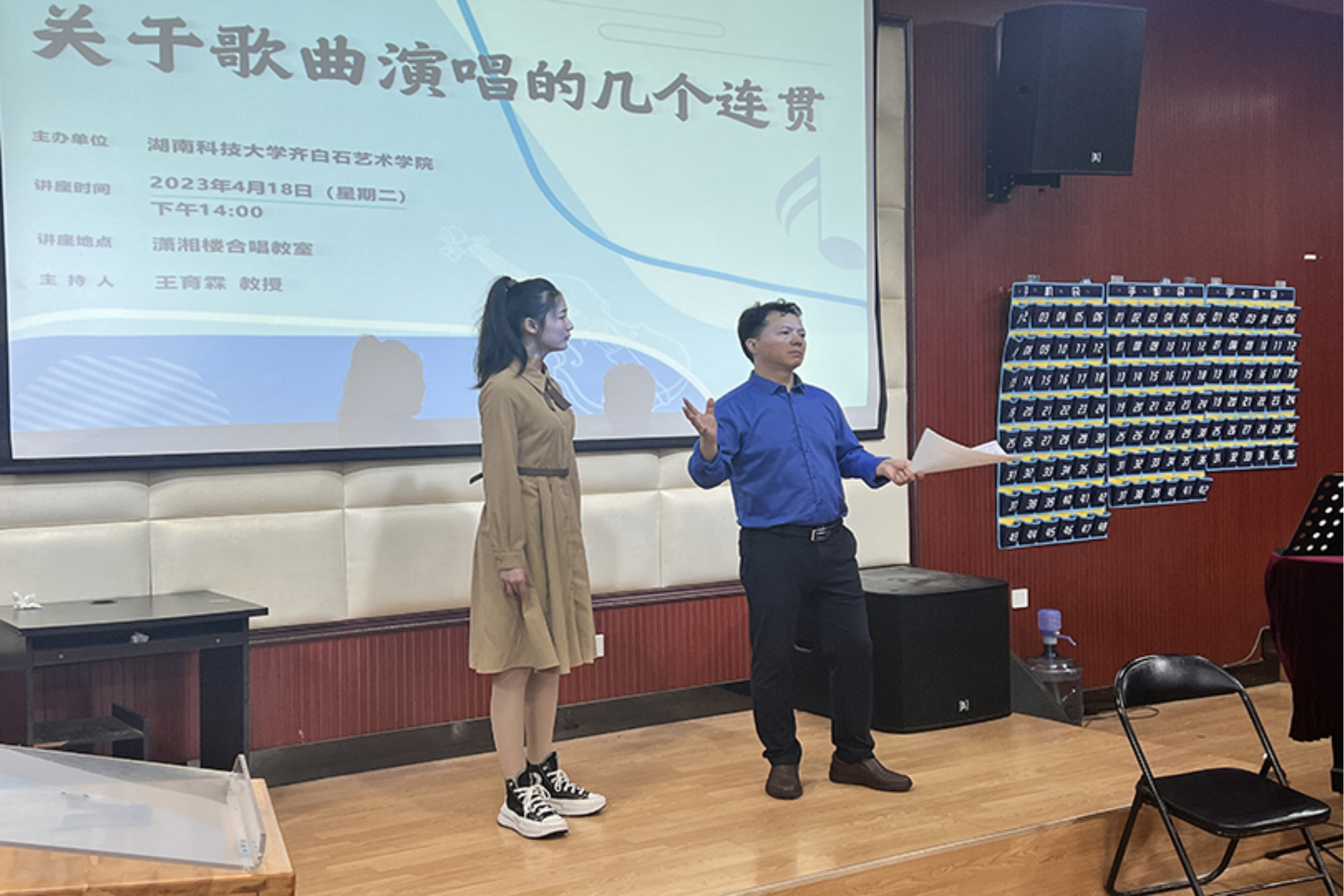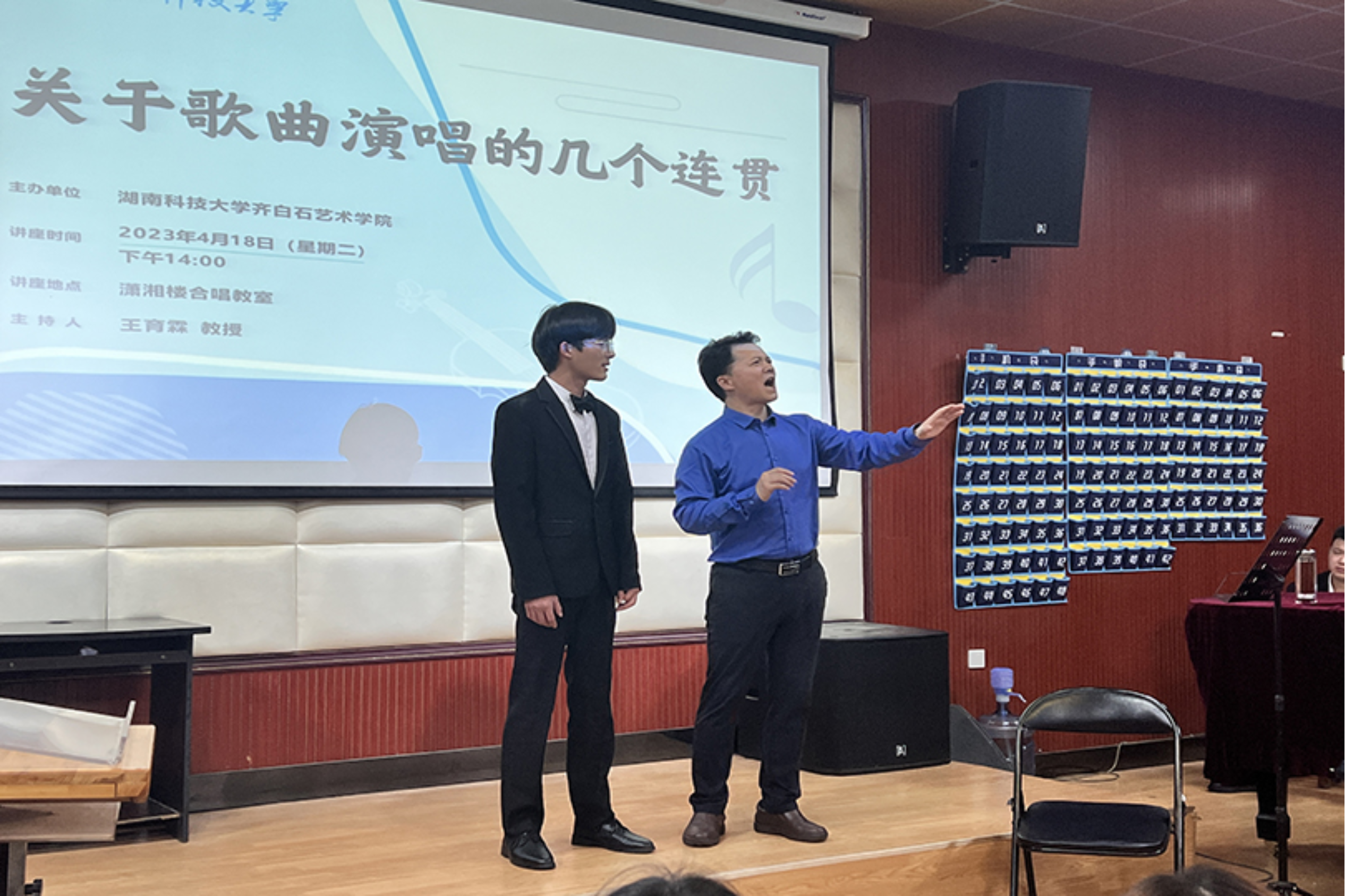 为进一步提升巨乳做爱 音乐系声乐教学质量,提高学生声乐演唱水平,4月18日下午,巨乳做爱 特别邀请到了马关辉教授在音乐系合唱教室开展主题为《关于歌曲演唱的几个连贯》的专题讲座,由巨乳做爱 副院长王育霖教授主持本次讲座。讲座以声乐公开课的形式开展,音乐系师生与会参加。